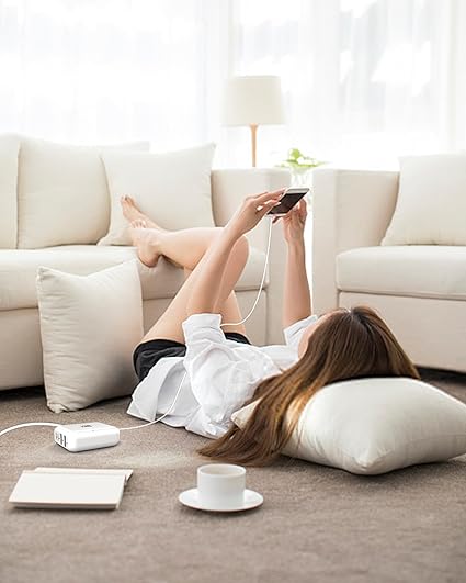- [Portable use] This portable charging station has a variety of usage scenarios. When you are at home, traveling, camping, or cruising, you can take it with you and plug it into a nearby 120V socket to enjoy charging. Say goodbye to low battery anxiety and multi-device charging anxiety.